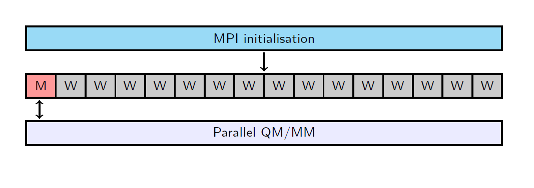 Task-farming parallelisation is supported by Py-ChemShell, and gives a significant advantage for calculations where computational efficiency is paramount. This type of parallelisation is useful for the subsequent calculations in this tutorial such as the nudged elastic band calculations and vibrational frequency analyses.